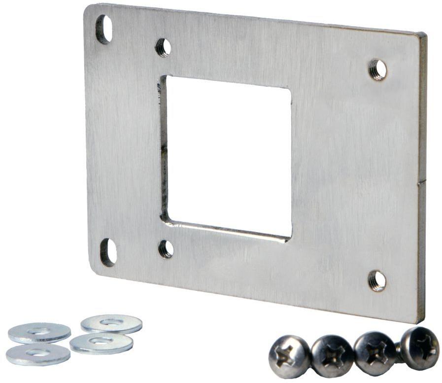 Die Montageplatte 80 kann zur Montage der Aufputzmontage verwendet werden Reihe von konvexen Lesegeräten und DC080-Antennen an schmalen Türrahmen oder Beiträge. Das Kit enthält eine Montageplatte aus Edelstahl und Schrauben.