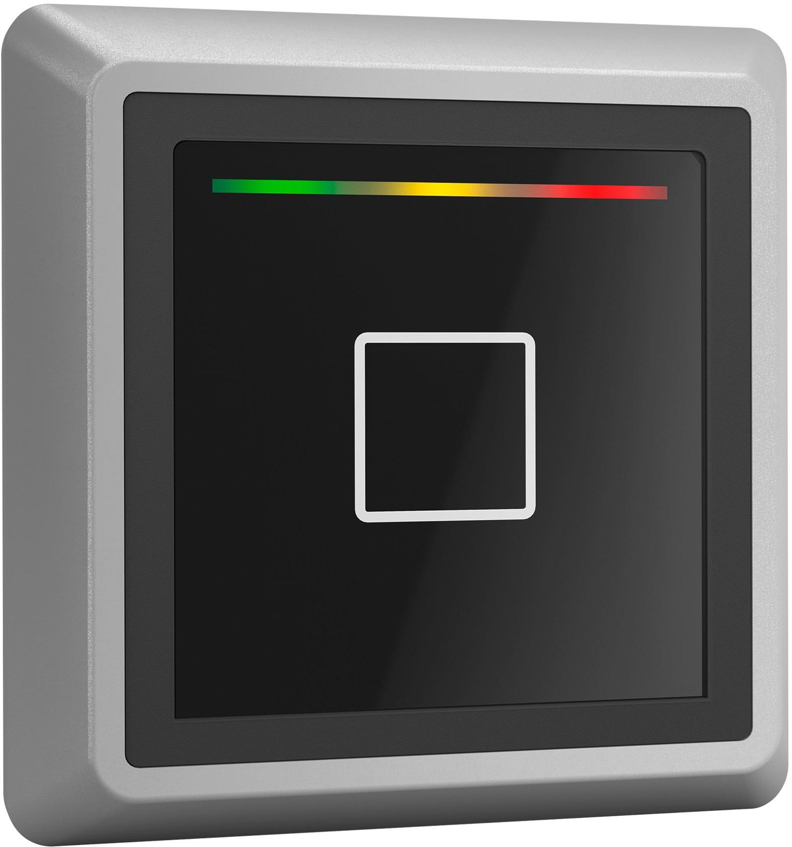 VOXIO Touch Steel – robuster RFID-Leser mit Metallgehäuse und IK09-Schutz. Mit RS485-Schnittstelle für flexible und zuverlässige Integration in rauen Umgebungen.